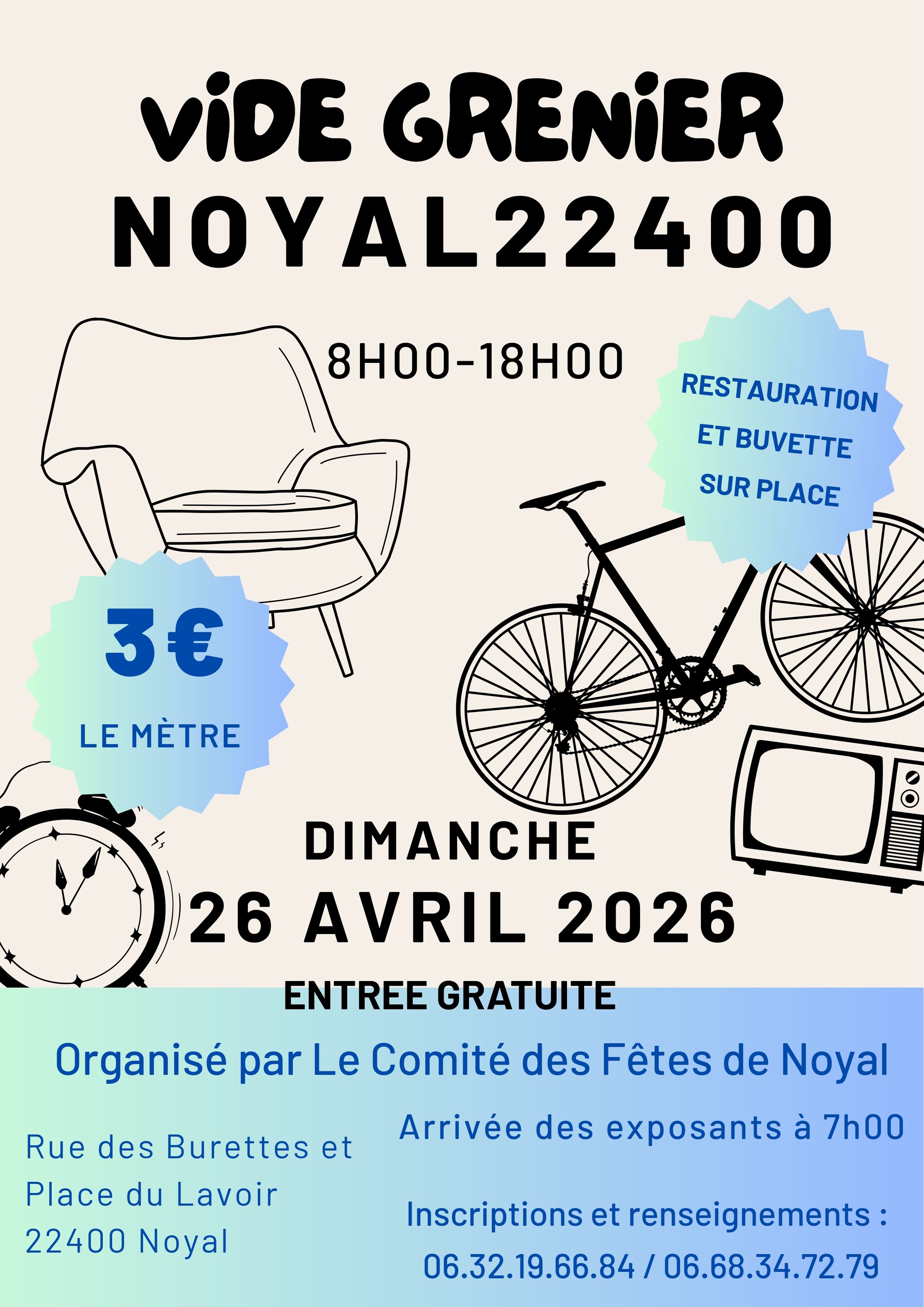 Le comité des fêtes organise un vide-grenier le dimanche 26 avril. Si vous avez des choses à vendre, n'hésitez pas à vous y inscrire!